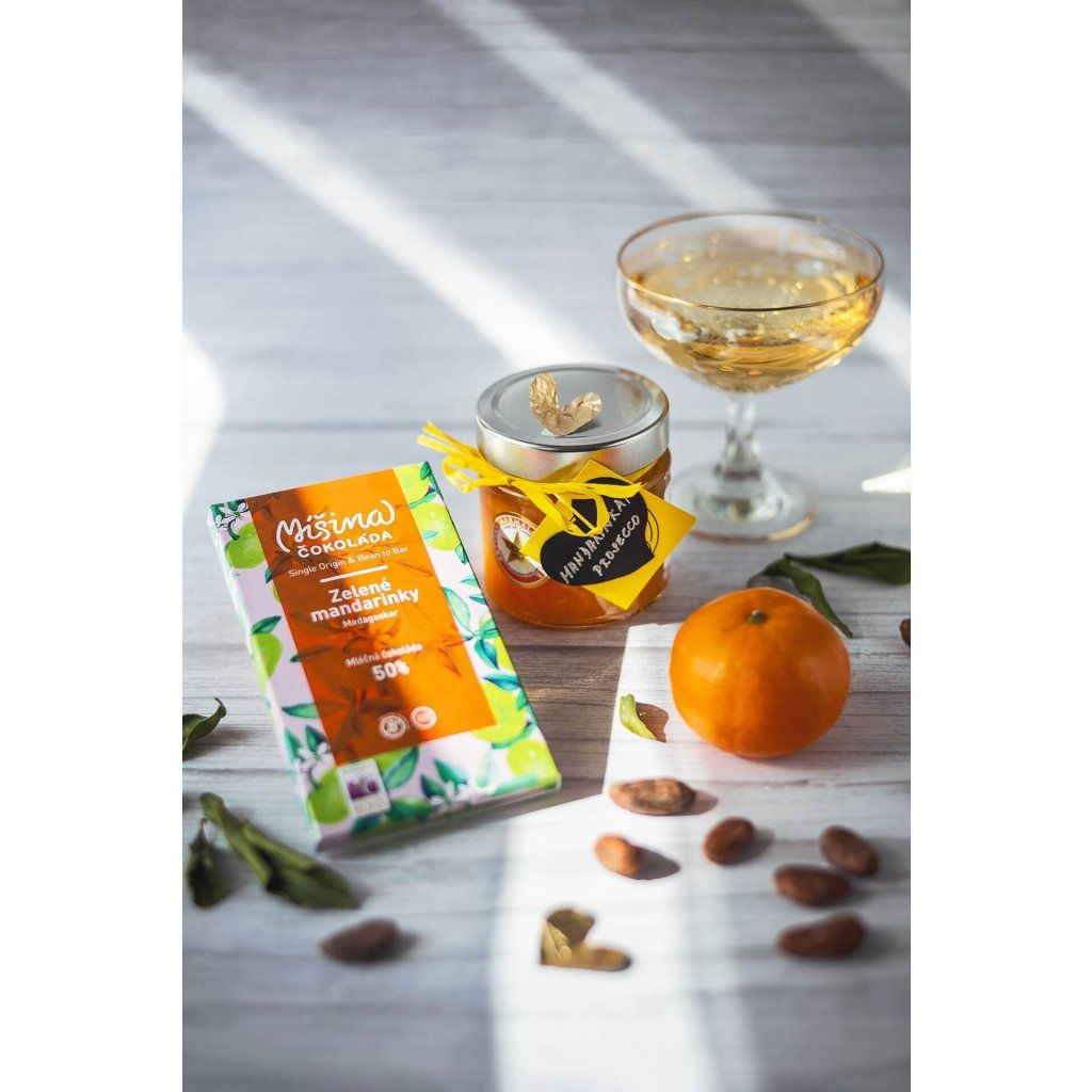 Marmalade ingredients: 62% clementines - chemically untreated, 6% Míšina chocolate Madagascar 70%, sugar, lemon juice, citrus pectin.